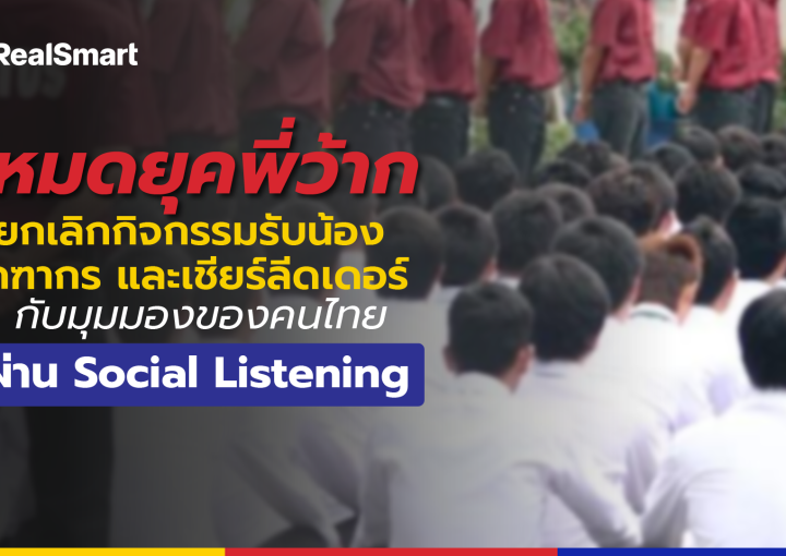 Tags Real Smart RealSmart Marketing กรกฎาคม 15, 2022 หมดยุคพี่ว้าก ยกเลิกกิจกรรมรับน้อง คฑากร และเชียร์ลีดเดอร์ กับมุมมองของคนไทยผ่าน Social Listening