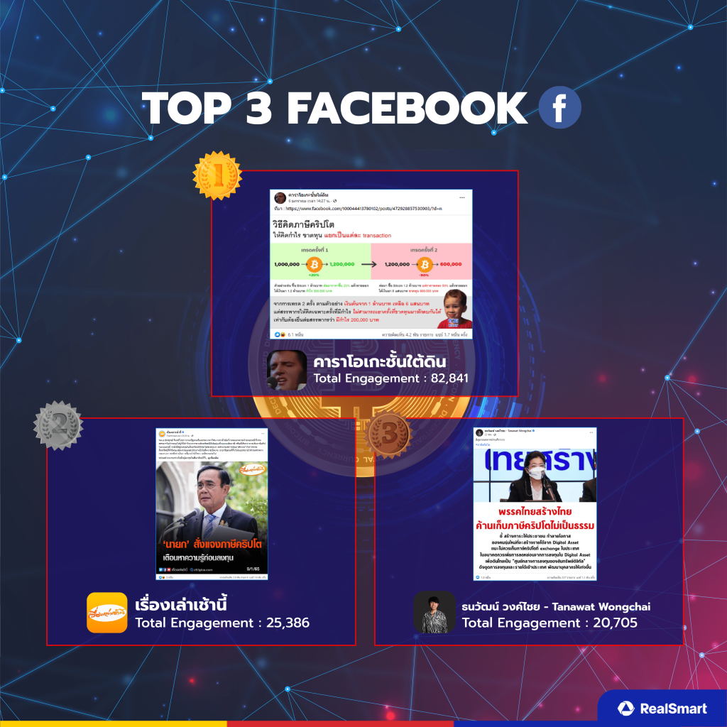 และในวันที่ 6 มกราคม 2565 กราฟดีดตัวพุ่งขึ้นอย่างรวดเร็ว ซึ่งในวันนั้นมี Facebook ส่วนตัวออกมาโพสต์ถึงการคำนวณอัตราการเสียภาษีที่คิดแต่กำไรอย่างเดียว ไม่มีการหักลบจากการขาดทุน อีกทั้ง Facebook page : TaxBugnoms ได้ออกมาสรุปภาษีคริปโตเสียยังไง เสียแบบไหน และชวนคิดวิเคราะห์ปัญหาที่เกิดขึ้น ซึ่งทั้ง 2 โพสต์นั้นได้รับ engagement มากเพราะได้รับความสนใจจากคนไทยในโลกออนไลน์
