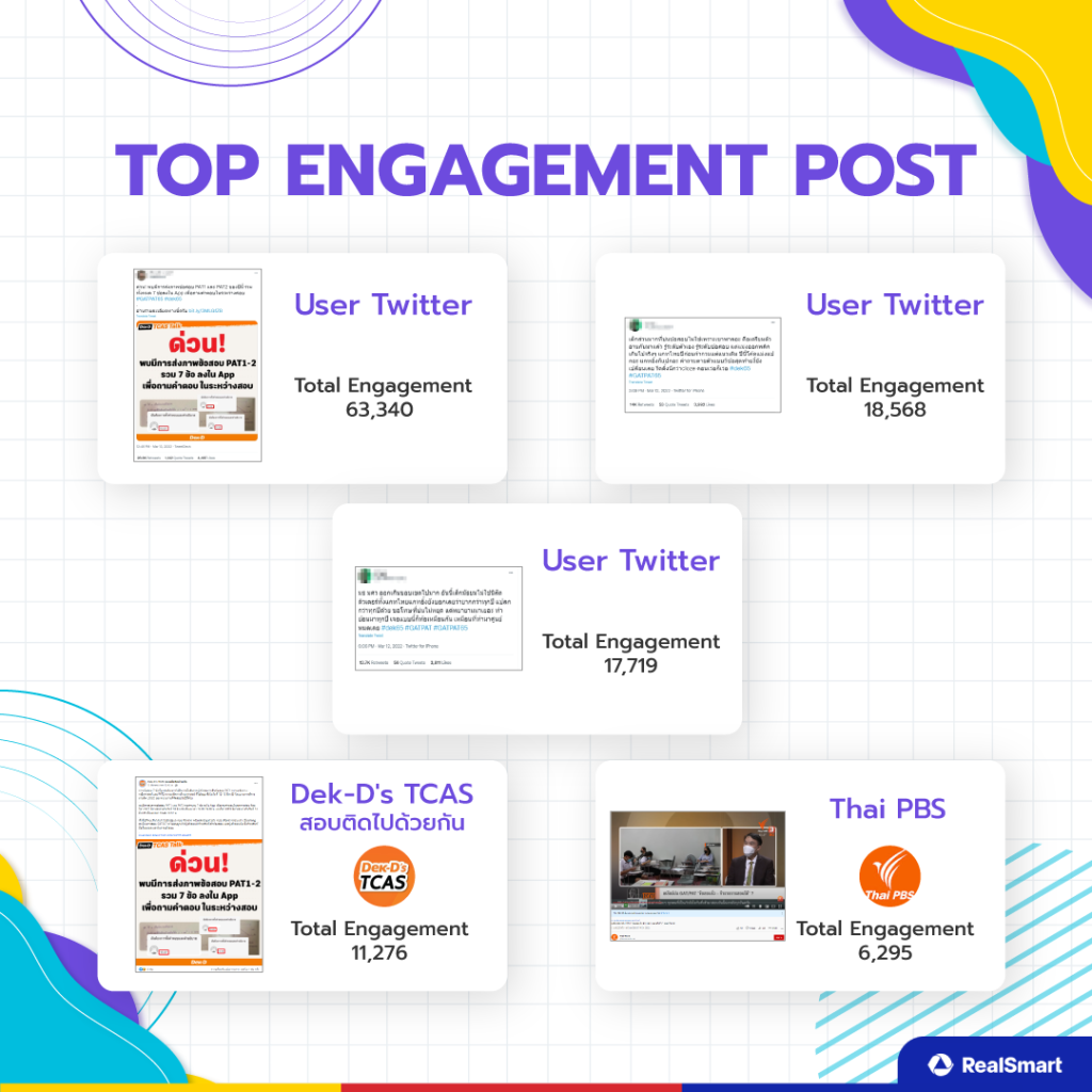 ต่อมาในส่วนของ Top engagement post โดยที่ทั้ง 3 อันดับแรกที่ได้ engagement สูงนั้นมาจากช่องทาง Twitter  รวมถึงช่องทาง Facebook และ YouTube ที่ยังคงได้รับความสนใจอยู่พอสมควร
