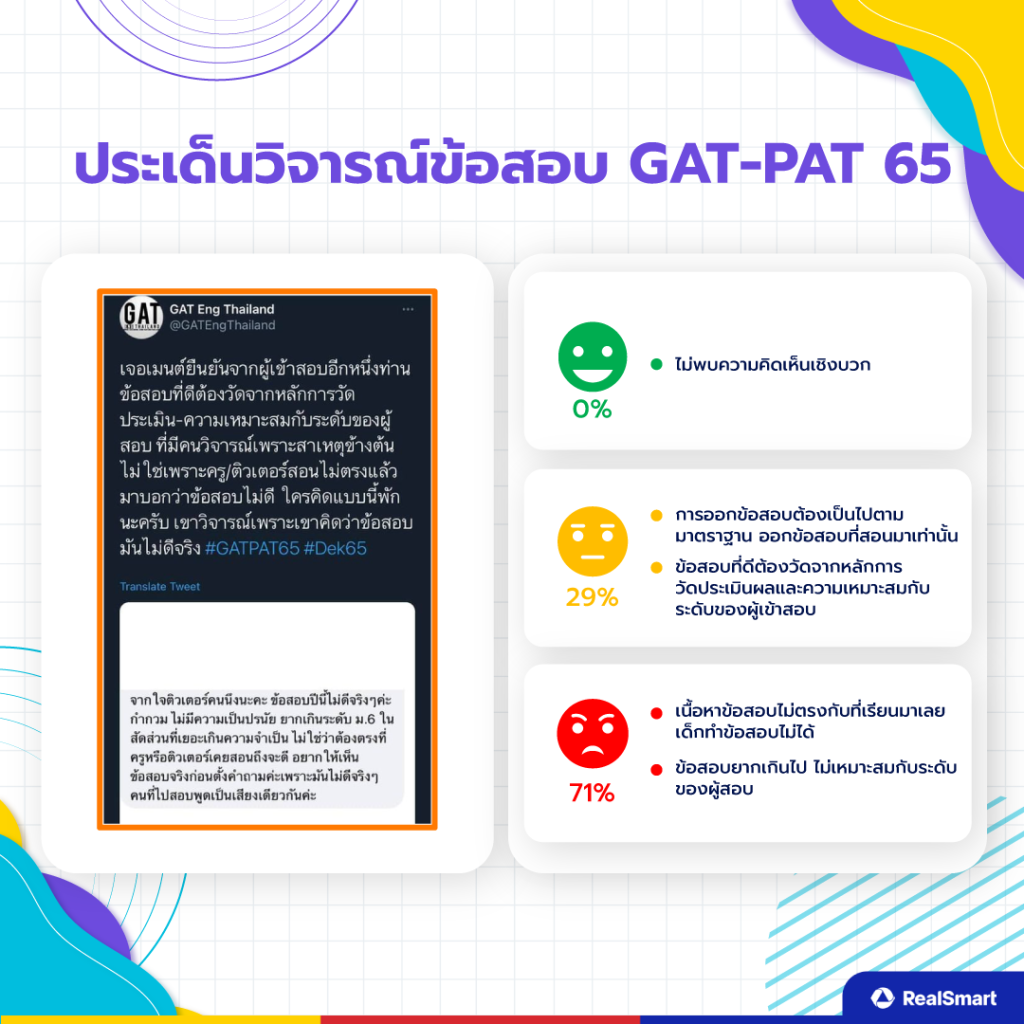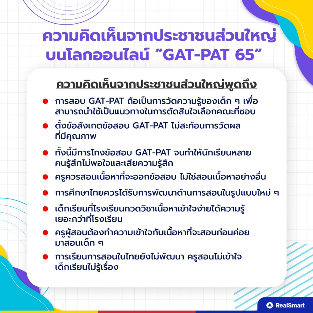 ความคิดเห็นจากประชาชนส่วนใหญ่บนโลกออนไลน์เกี่ยวกับการสอบ GAT/PAT 65