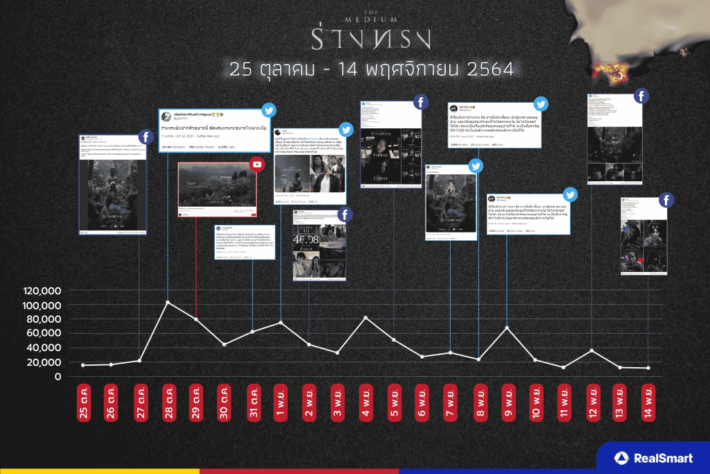 วันที่ 28 ตุลาคม – 1 พฤศจิกายน 2564  “ร่างทรง” เริ่มเป็นที่พูดถึงมากขึ้นเรื่อย ๆ  เกี่ยวกับมุมมองและความรู้สึกที่มีต่อหนัง โดยเฉพาะในช่องทาง YouTube และ Twitter