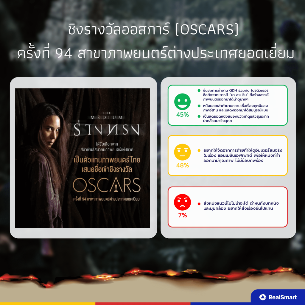 • Negative (เชิงลบ) 7% มองว่าหนังเรื่องนี้ไม่น่าจะได้รางวัลออสการ์ อยากให้ส่งเรื่องอื่นไปแทน