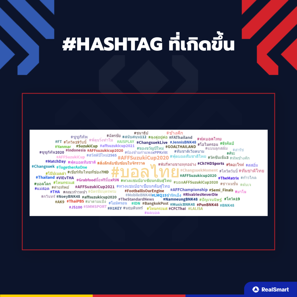 Top #Hashtag ที่เกิดขึ้นเกี่ยวกับกระแส AFF Suzuki Cup 2020 มีอยู่มากมาย แต่ที่เห็นได้ชัดเจนจะเป็น #บอลไทย #AFFSuzukiCup2020 #ทวงแชมป์อาเซียนกลับสู่ไทย และอื่น ๆ หากใครสนใจสามารถไปตามดูใน Hashtag เกิดขึ้นได้เช่นกัน