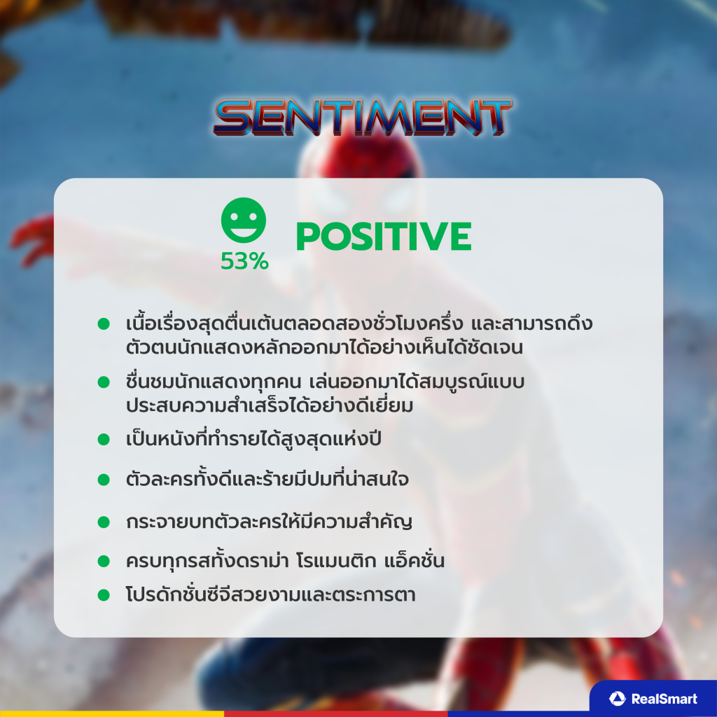 ต่อมาเรามาดูความรู้สึก (Sentiment) โดยรวมของคนไทยในโลกออนไลน์หลังจากที่ได้ดู SPIDER-MAN : No Way Home