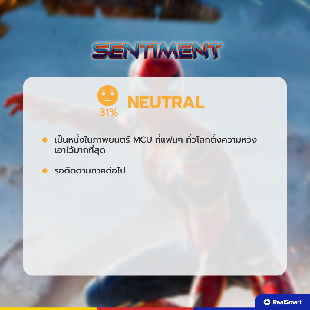 Neutral Sentiment (ความเห็นเชิงทั่วไป) 31% บอกว่าเป็นหนึ่งในภาพยนตร์ MCU ที่แฟน ๆ ทั่วโลกตั้งความหวังเอาไว้มากที่สุด รอติดตามภาคต่อไป