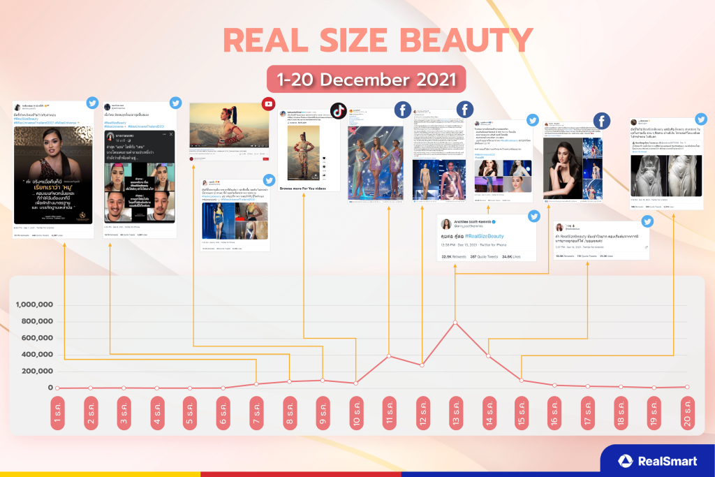 ถึงแม้ว่าคุณแอนชิลีจะไม่ได้เข้ารอบ 16 คนสุดท้ายในการประกวด Miss Universe 2021 แต่ประเด็นที่ถูกจุดติดขึ้นแล้วทำให้ #RealSizeBeauty โด่งดังไปทั่วโลก โดยเฉพาะท่ามกลางแฟนคลับนางงาม และบนโลกโซเชียลทาง Real Smart ได้เก็บข้อมูลเกี่ยวกับเรื่องนี้ทั้งหมดผ่านเครื่องมือที่เรียกว่า Social Listening Tools มาสรุปให้ฟังว่าเกิดอะไรขึ้นบ้าง ไปดูกันเลย