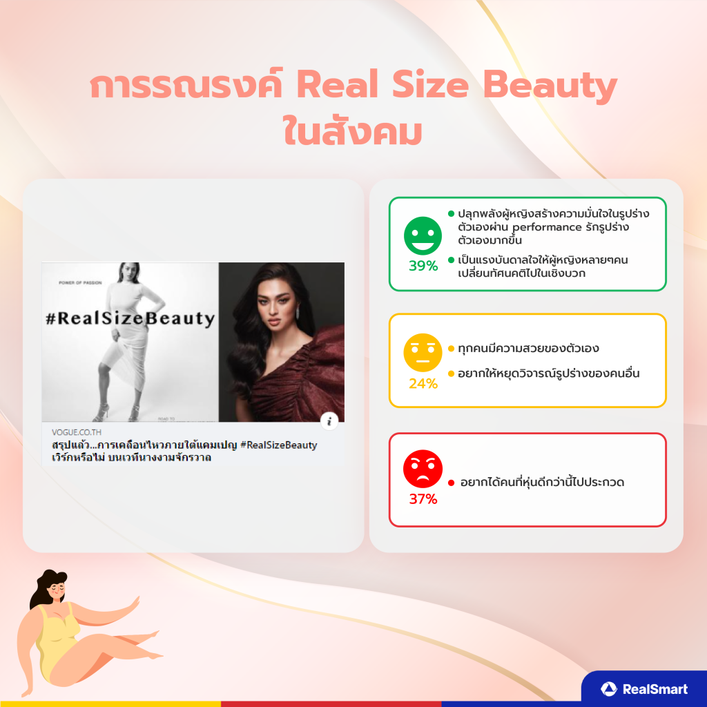 Neutral (ความเห็นเชิงทั่วไป) 24% มองว่าทุกคนมีความสวยของตัวเอง อยากให้หยุดวิจารณ์รูปร่างของคนอื่น