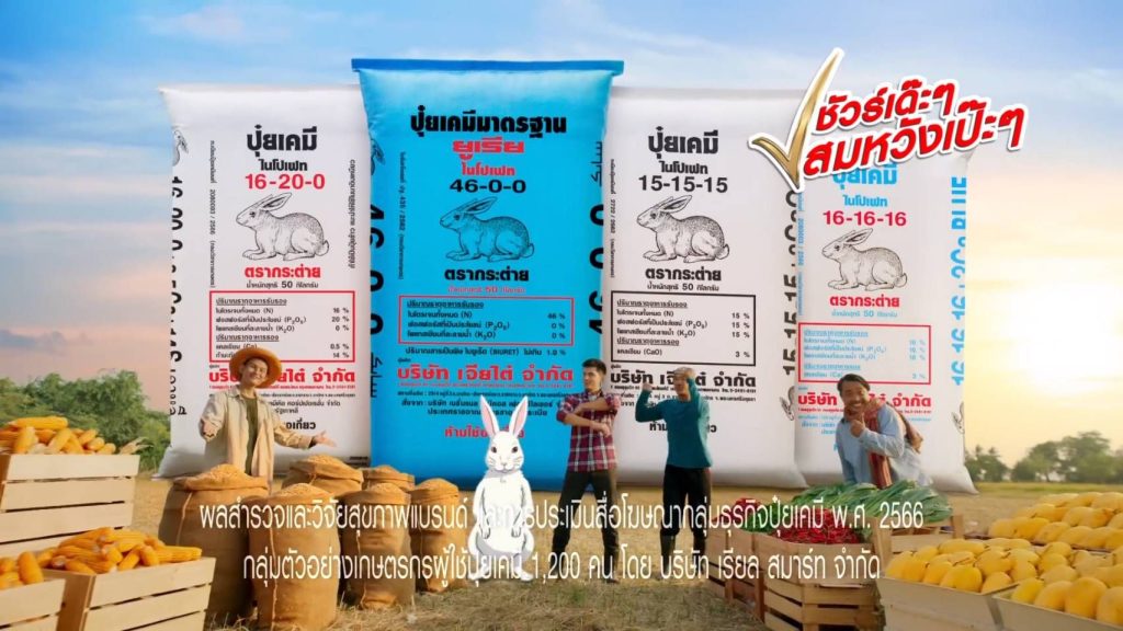 เราใช้แนววิเคราะห์ข้อมูลอัจฉริยะเชิงลึกจากหลักการ ‘𝐌𝐚𝐫𝐤𝐞𝐭𝐢𝐧𝐠 𝟒.𝟎’ ( 𝐂𝐨𝐧𝐬𝐮𝐦𝐞𝐫 𝐣𝐨𝐮𝐫𝐧𝐞𝐲) ผนวกเข้ากับกลยุทธ์การตลาดยุคใหม่ (𝐂𝐮𝐭𝐭𝐢𝐧𝐠-𝐄𝐝𝐠𝐞𝐝 𝐌𝐚𝐫𝐤𝐞𝐭𝐢𝐧𝐠 𝐒𝐭𝐫𝐚𝐭𝐞𝐠𝐲) เพื่อสร้างประสบการณ์ที่แตกต่าง ‘เข้าใจ’ กลุ่มเป้าหมาย ออกแบบเส้นทางผู้บริโภคที่ ‘เชื่อมโยง’ ช่องทางการรับสื่อได้อย่างไร้รอยต่อ เพื่อเจาะกลุ่มเป้าหมาย ‘เข้าถึง’ อย่างแม่นยำ จากการบูรณาการ Media Placement ผนวกรวมเข้ากับ Creative Evaluation และ PostMedia Evaluation ทำให้สามารถวิเคราะห์ความต้องการของผู้บริโภคกลุ่มเกษตรกรได้อย่างลึกซึ้งภาพยนตร์โฆษณาชุด “ชัวร์เด๊ะๆ สมหวังเป๊ะ” ของแบรนด์ปุ๋ยตรากระต่าย โดยบริษัท เจียไต๋ จำกัด ผู้นำธุรกิจนวัตกรรมการเกษตรของไทย ได้นำเสนอเรื่องราวของเกษตรกรที่รู้จริงในการเพาะปลูก และเน้นการให้ความรู้ด้านการเกษตรอย่างแท้จริง แทนการใช้ความบันเทิงเพียงอย่างเดียว โฆษณานี้ชูคอนเซ็ปต์ ‘ความน่าเชื่อถือ’ ที่ตอกย้ำความเป็นผู้นำแบรนด์คุณภาพอันดับ 1 ในธุรกิจปุ๋ยเคมีที่เกษตรกรไทยไว้วางใจมาอย่างยาวนาน